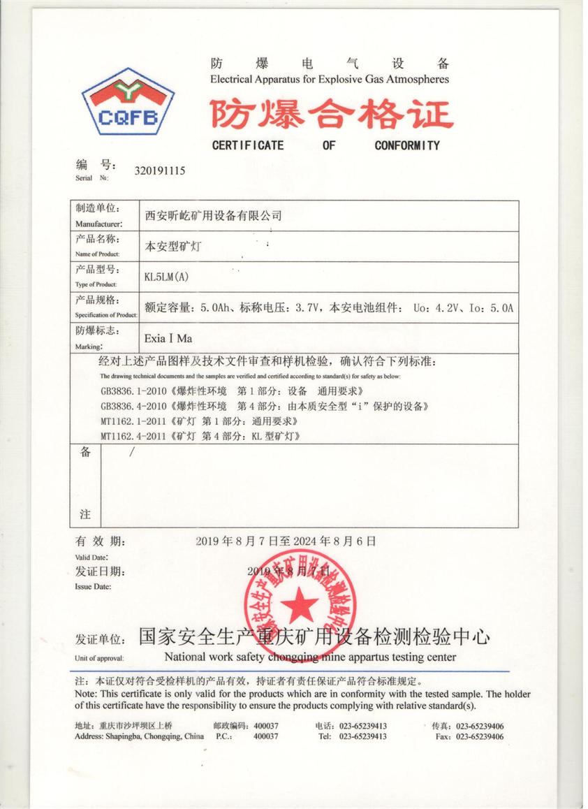 礦燈防爆證